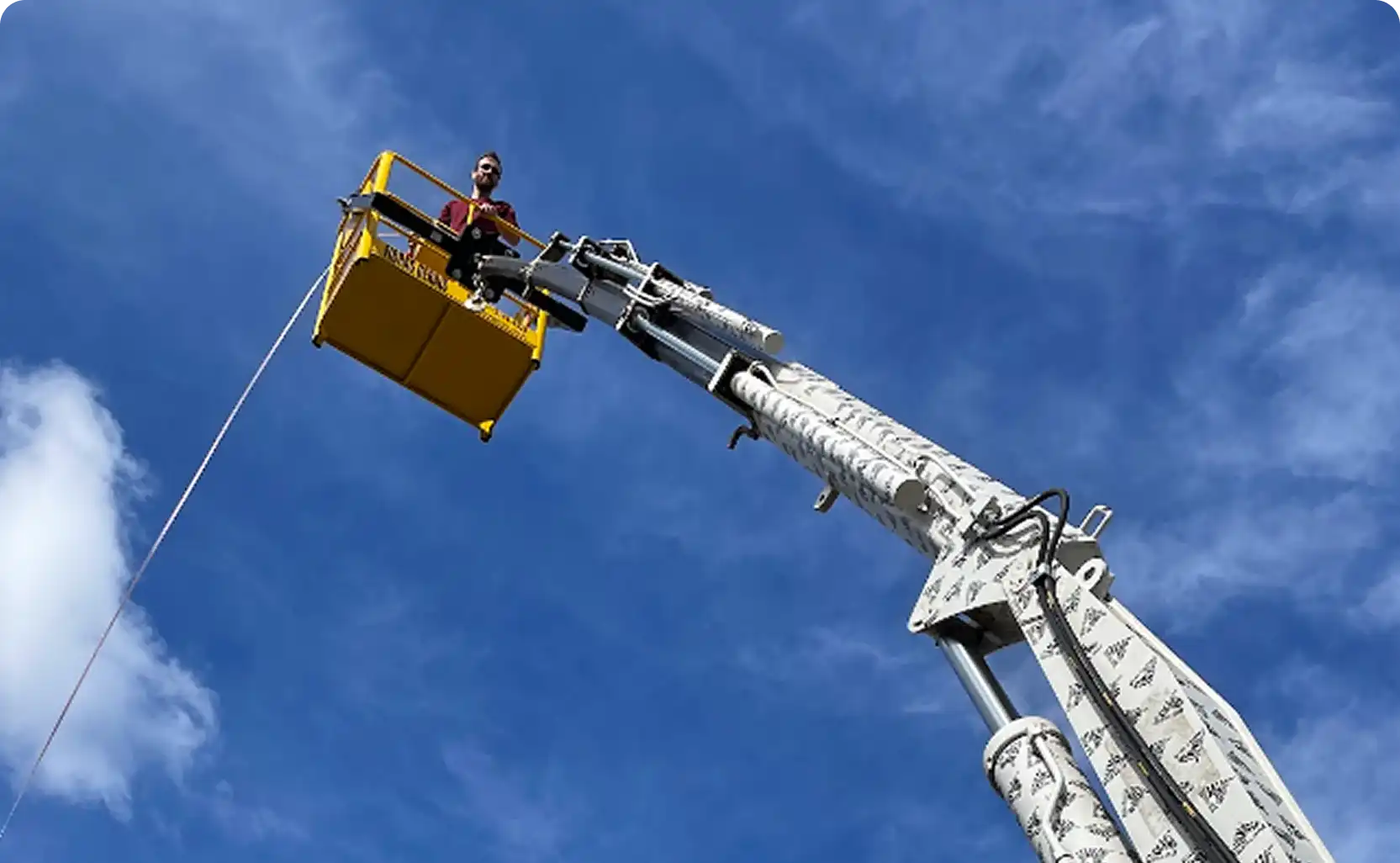 O cesto aéreo do caminhão Munck é utilizado para elevar trabalhadores a locais de difícil acesso, garantindo segurança em serviços como manutenção elétrica, poda de árvores e instalações em altura.